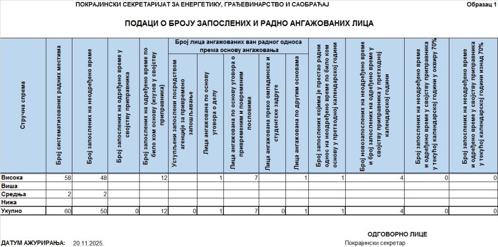 ПОДАЦИ О СТРУКТУРИ ЗАПОСЛЕНИХ И РАДНО АНГАЖОВАНИХ ЛИЦА У ПОКРАЈИНСКОМ СЕКРЕТАРИЈАТУ